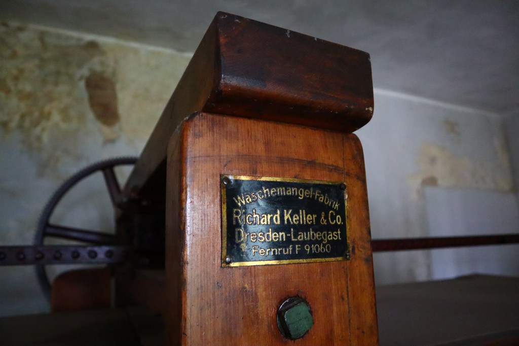 Abgesehen von frischen Backwaren kann man sich dort den Schlüssel abholen, wenn man „auf die Rolle gehen“ möchte. So nennt meine Großmutter zumindest den Gang zur Kaltwäschemangel unseres Ortes. Inzwischen benutzt aber selbst sie diese Gerätschaft nicht mehr.