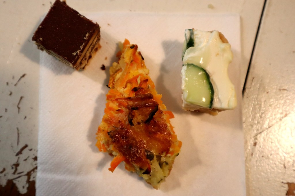 Der Tasty-Tour-Gruppe serviert sie ein Stück Gemüsetorte – der Name ist schließlich Programm -, eine Kostprobe von ihrem traditionell gehaltenen Kalten Hund und . . . ein Stück Gurken-Cheesecake. Ja, das klingt erstmal gewöhnungsbedürftig, Probieren lohnt sich aber! Das Gebäck kann vor allem durch seine frische Note überzeugen.