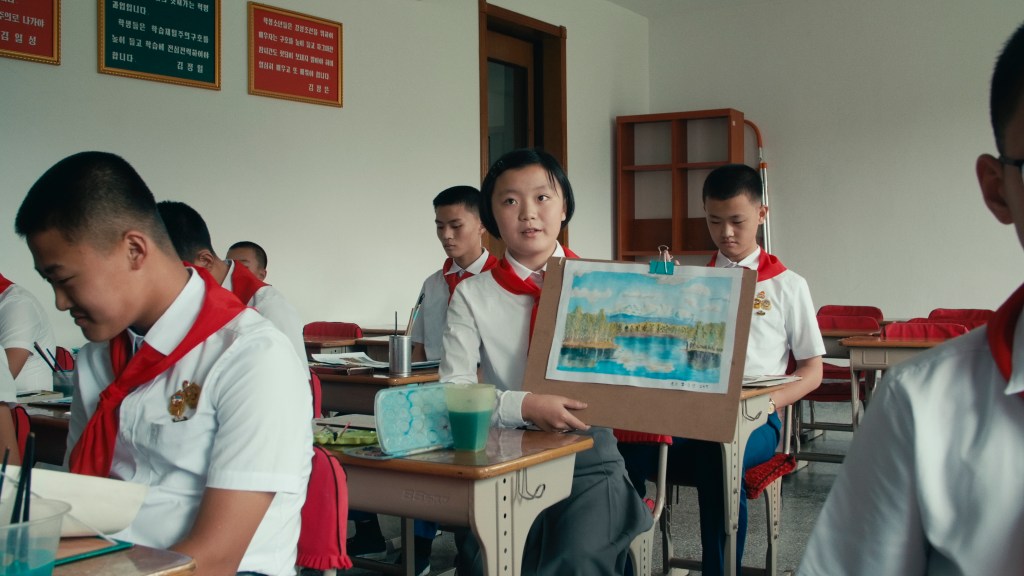 Eine große Stärke der Ausstellung ist, dass die Interviews nicht großartig kommentiert werden. Die Dialoge stehen für sich. Als Besucher gleicht man sein bisheriges Wissen über nordkoreanische Arbeitslager, das Spitzelsystem und die brutalen Strafen mit den Video-Inhalten ab. Dadurch erahnt man trotz all der Gipfel, auf welch schmalen Graten die Menschen beim Gespräch über ihr Land balancieren. Besonders eindrucksvoll zeigt sich das, als ein Mädchen im Kunstunterricht ihr Bild sichtlich nervös erläutert.
